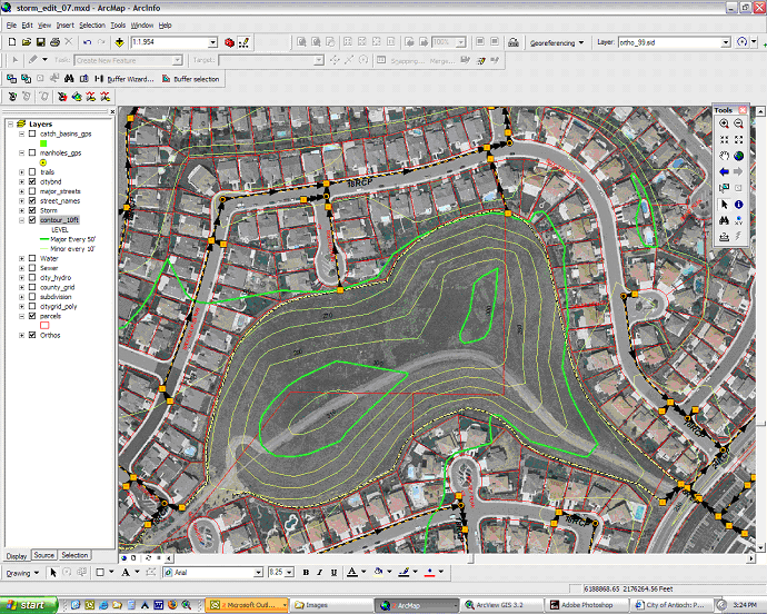 The City of Antioch’s Public Works Department has implemented GIS to aid in the management of its Water Distribution System, Sanitary Sewer Collection System, and Storm Water Collection System. The City of Antioch is unique in the sense that it maintains all three of these Public Utility Systems, including the production and distribution of its own drinking water. For each one of these public utility systems a city-wide asset inventory and extensive databases have been created using GIS technology. This GIS data allows City staff to track asset depreciation, model each system through network connectivity, create maintenance schedules for assets, and serve as a reference in emergency situations.